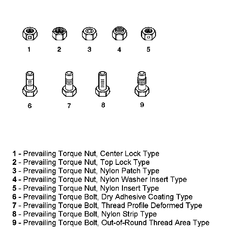 These fasteners accomplish the thread interface by the presence of a thread-locking compound on the fastener threads. Refer to the appropriate repair procedure in order to determine if the fastener may be reused and the applicable thread-locking compound to apply to the fastener.