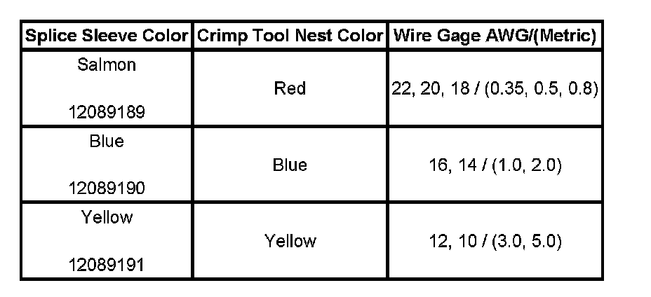 5. Select the proper duraseal splice sleeve according to the wire size. Refer to the table provided.