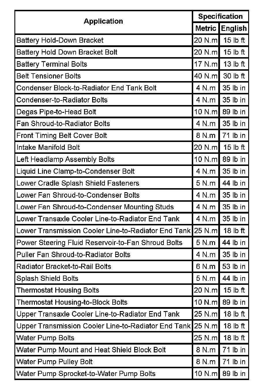 Fastener Tightening Specifications: