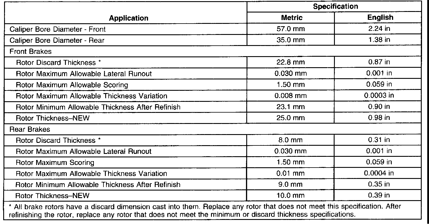 Disc Brake Component Specifications