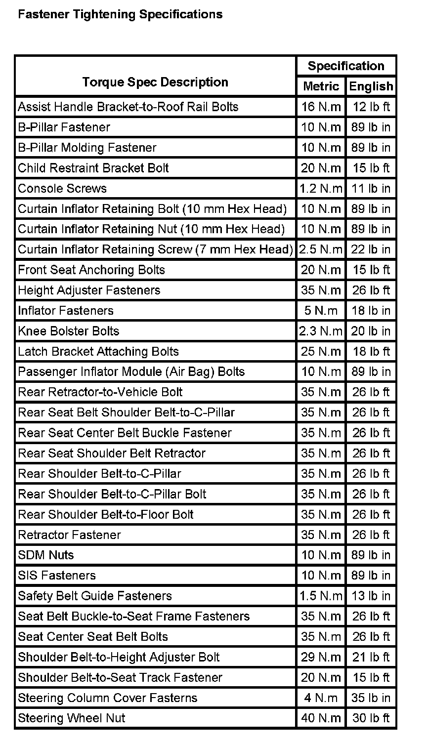 Seat Belt Systems