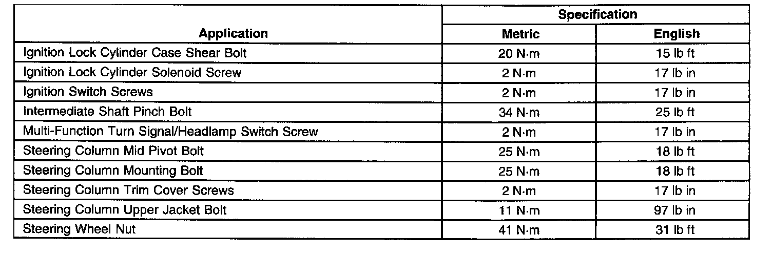 Torque Specifications: