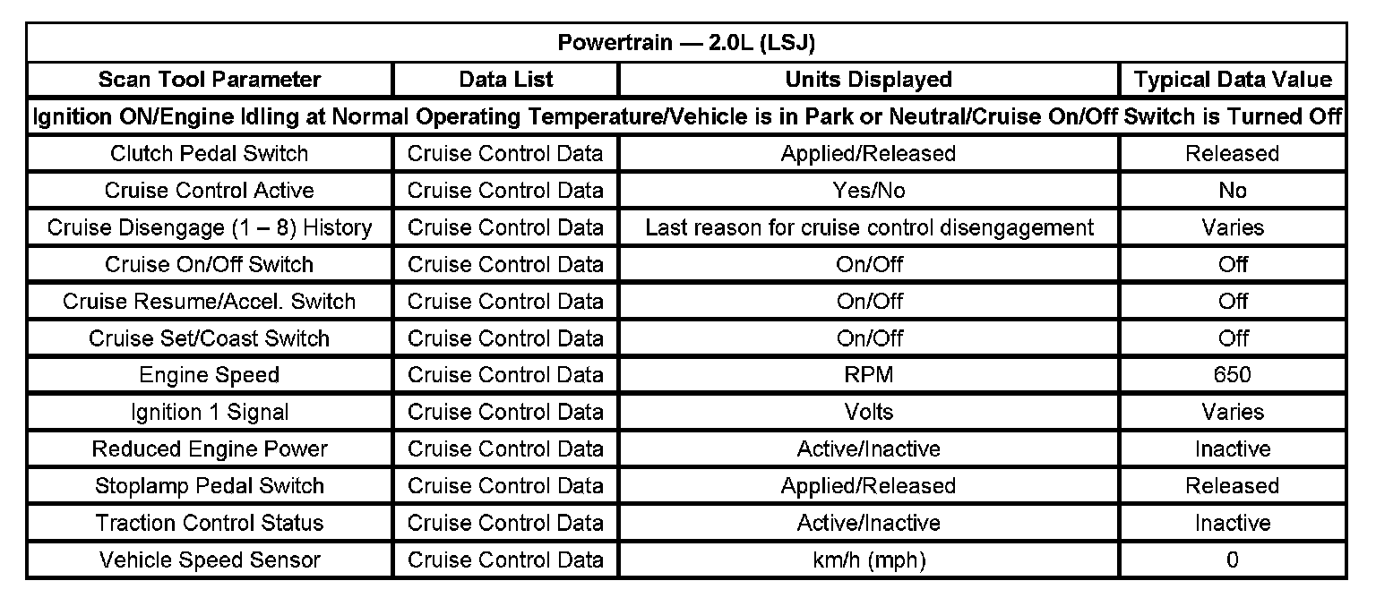 Scan Tool Data List - Powertrain: