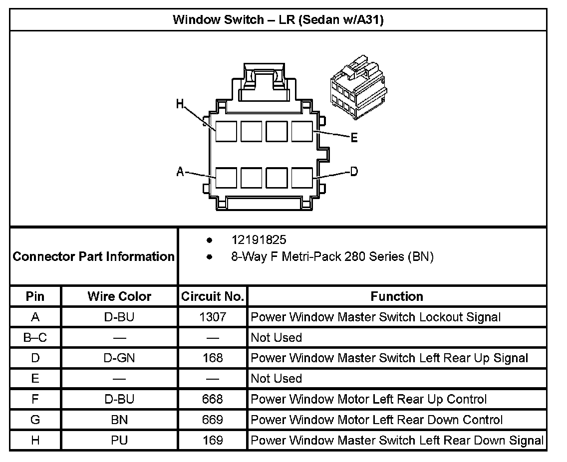 Window Switch - LR (Sedan With RPO Code A31):