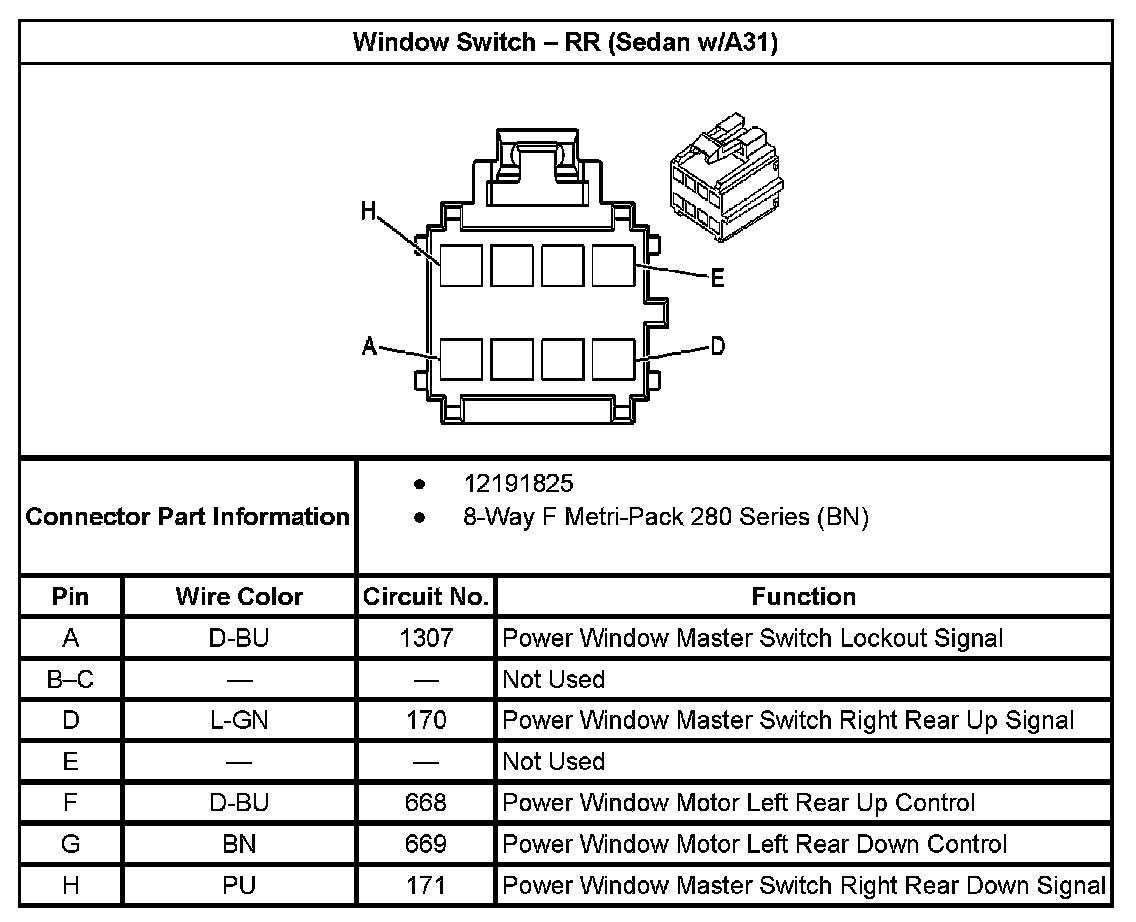 Window Switch - RR (Sedan With RPO Code A31):