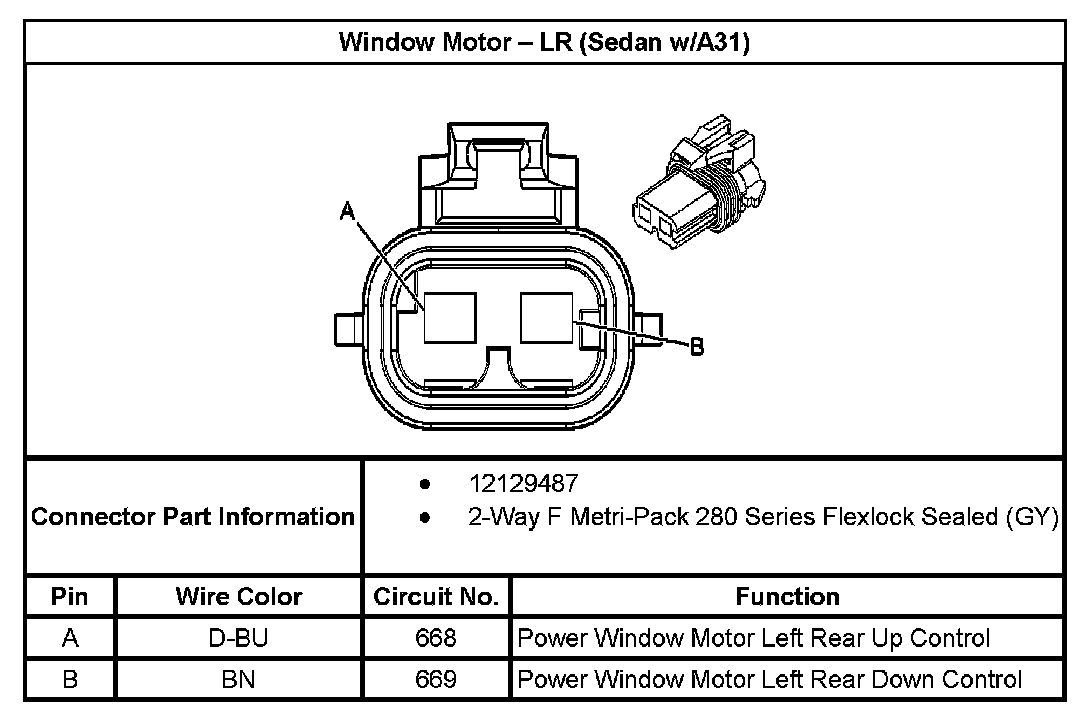 Window Motor - LR (Sedan With RPO Code A31):