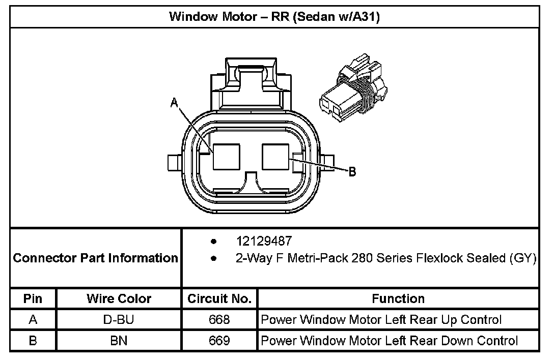 Window Motor - RR (Sedan With RPO Code A31):