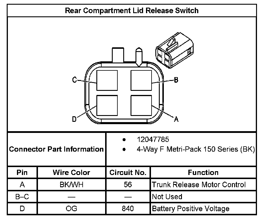 Rear compartment Lid Release Switch: