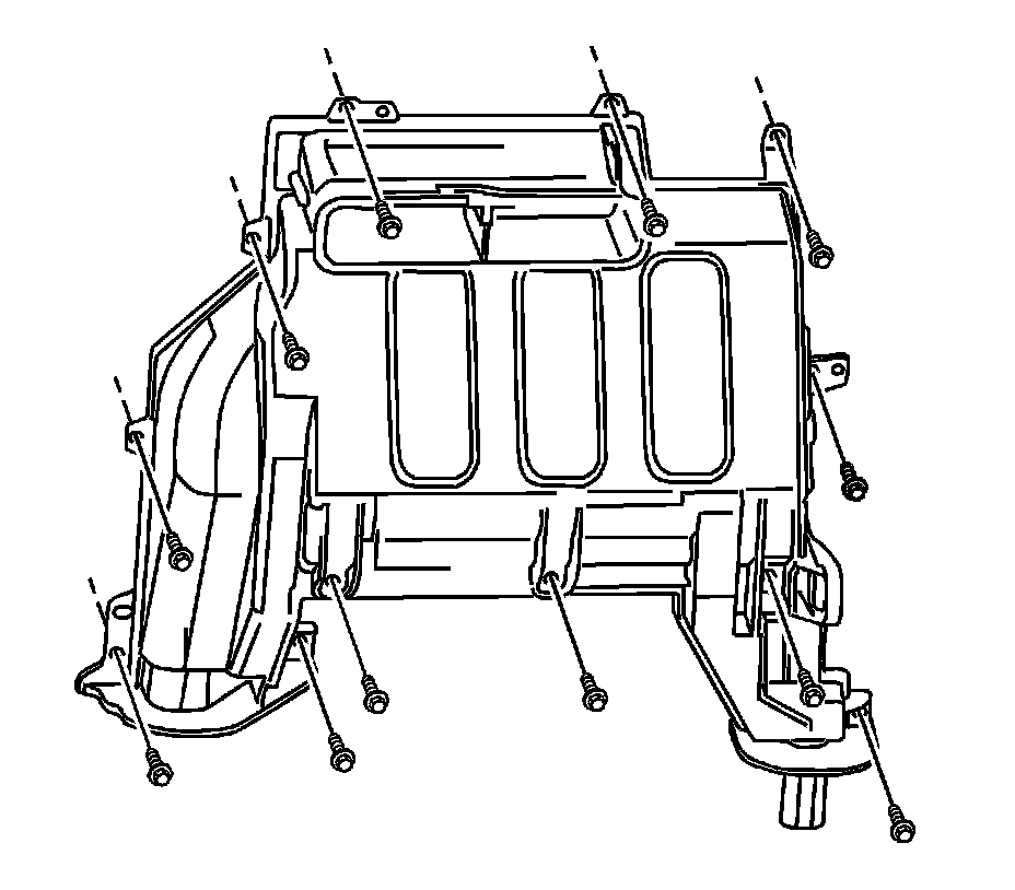 IMPORTANT: Make certain that the heater core cover is properly positioned and is fully seated on the HVAC module before installing the screws. Be sure to install all heater core cover screws.