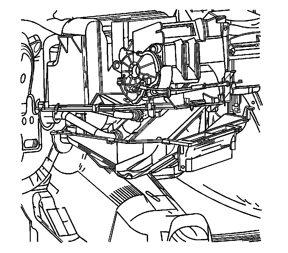 IMPORTANT: Make certain that all of the heater core cover screws are removed before attempting to remove the heater core cover.