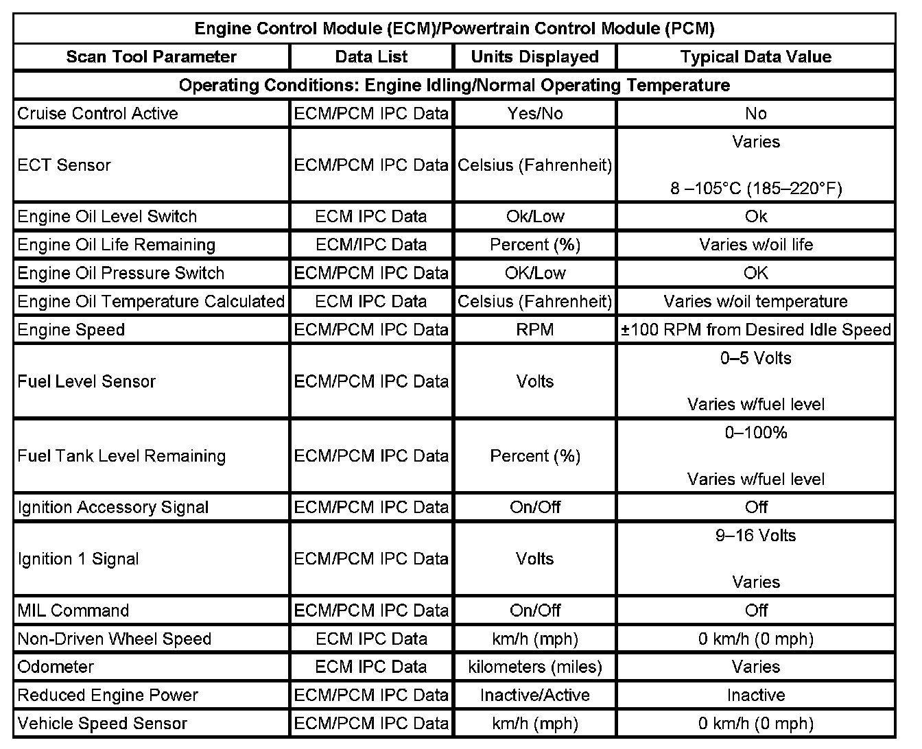 Scan Tool Data List