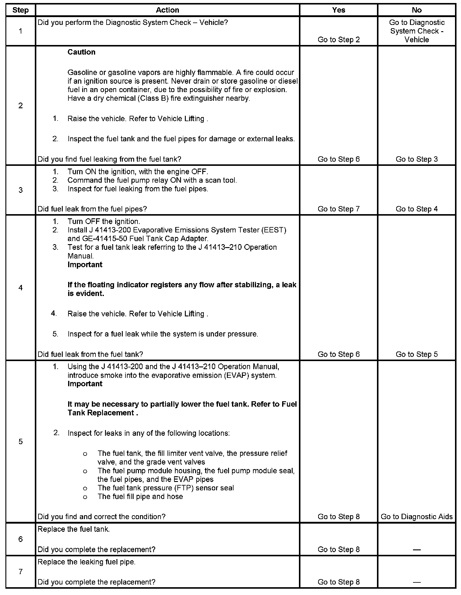 4. This step tests for fuel leaks below the fuel tank fuel level.