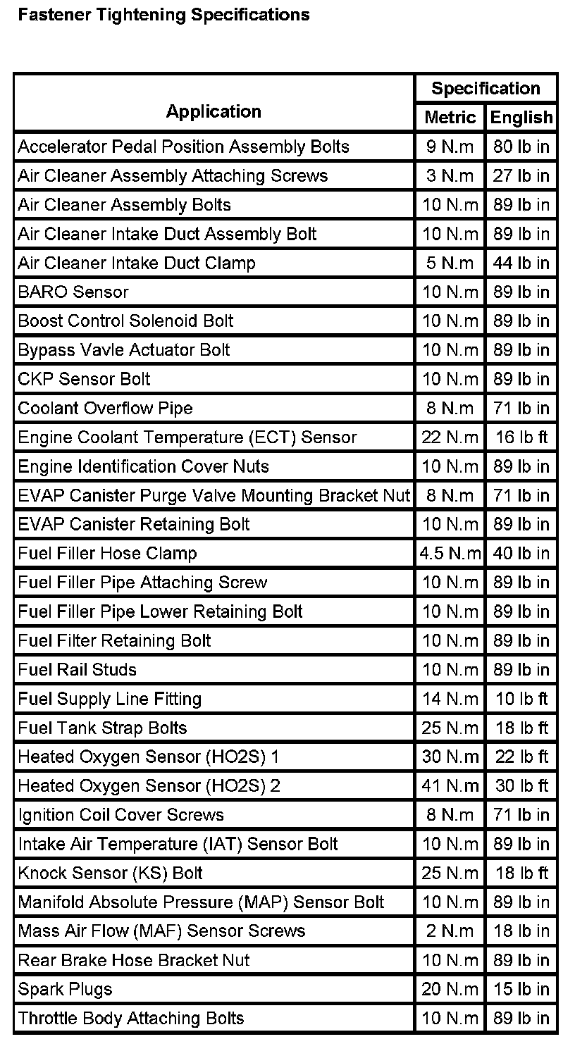 Fastener Tightening Specifications: