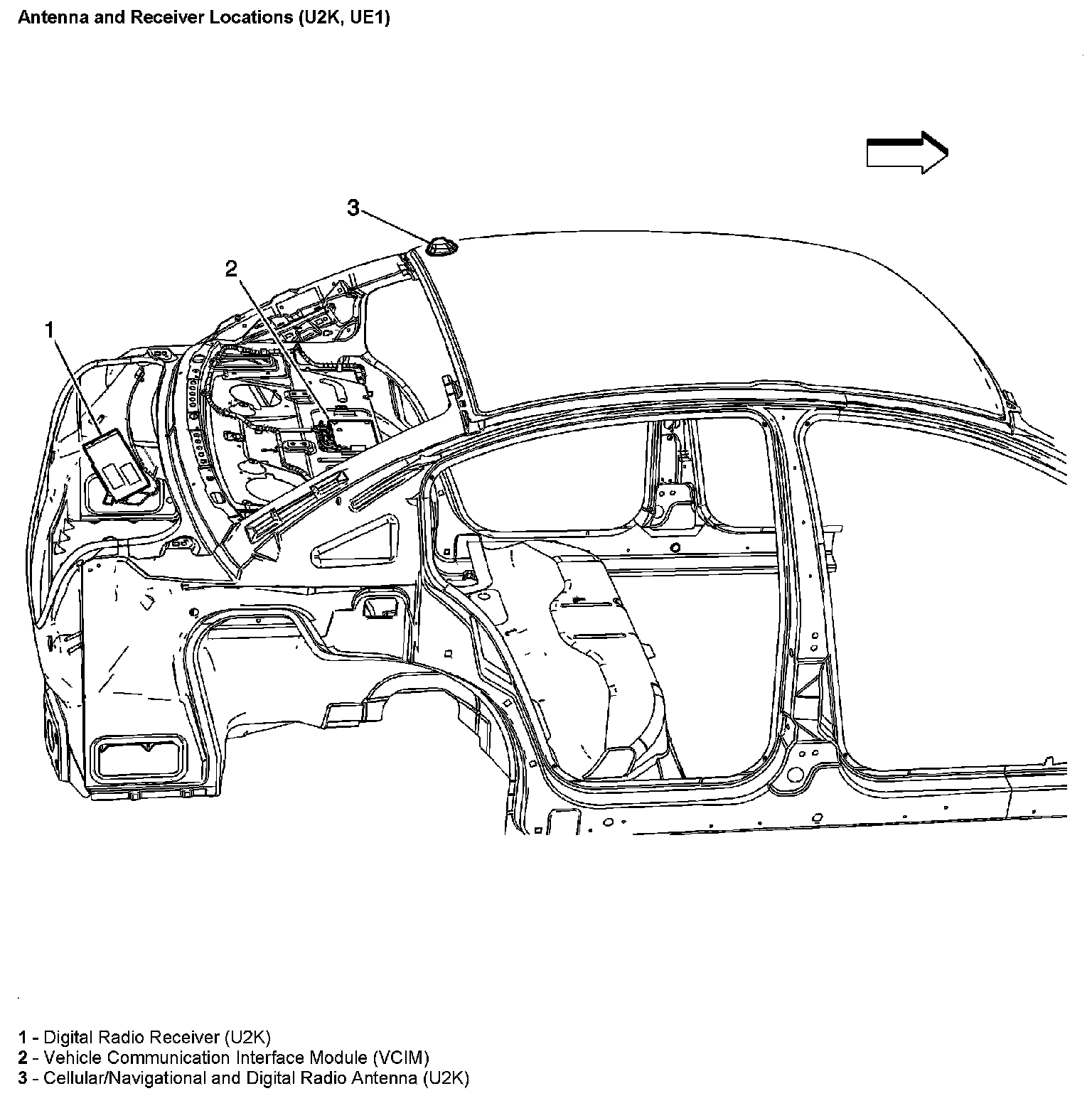Antenna And Receiver Locations (With RPO Code U2K, UE1):