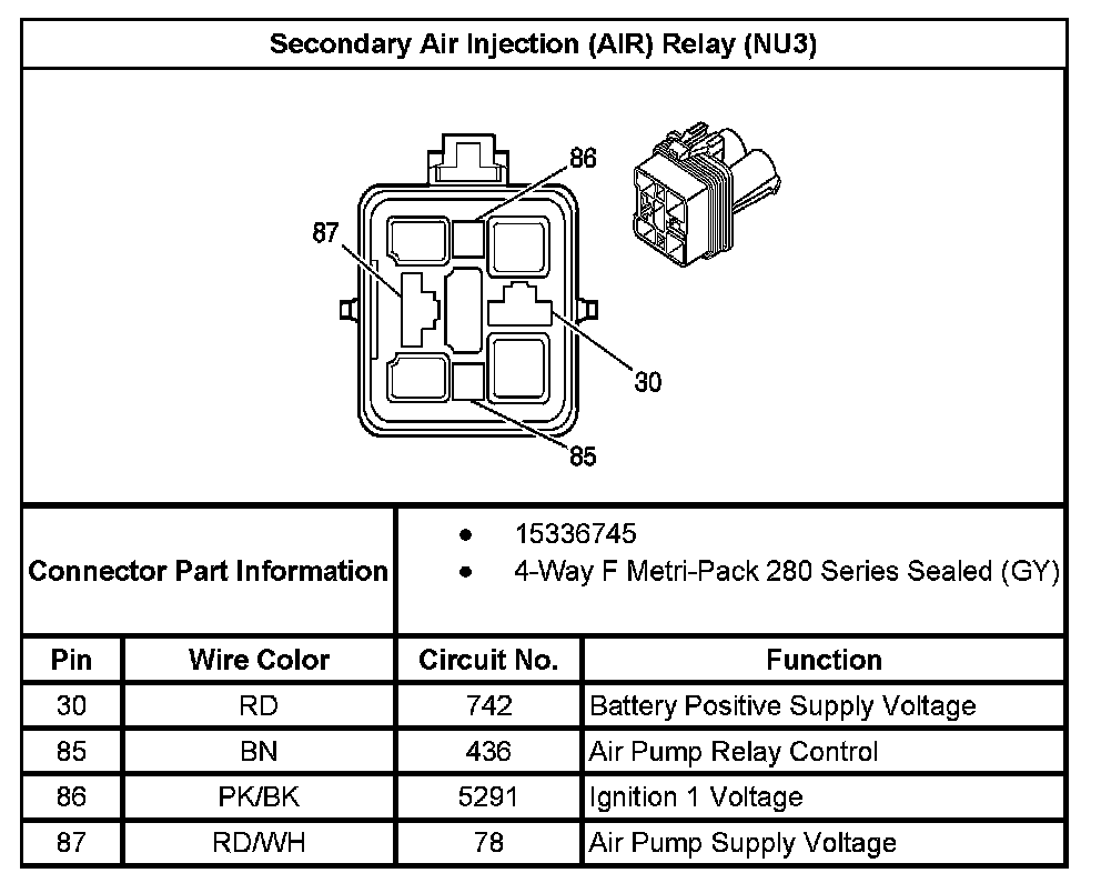 Secondary Air Injection (AIR) Relay (With RPO Code NU3):
