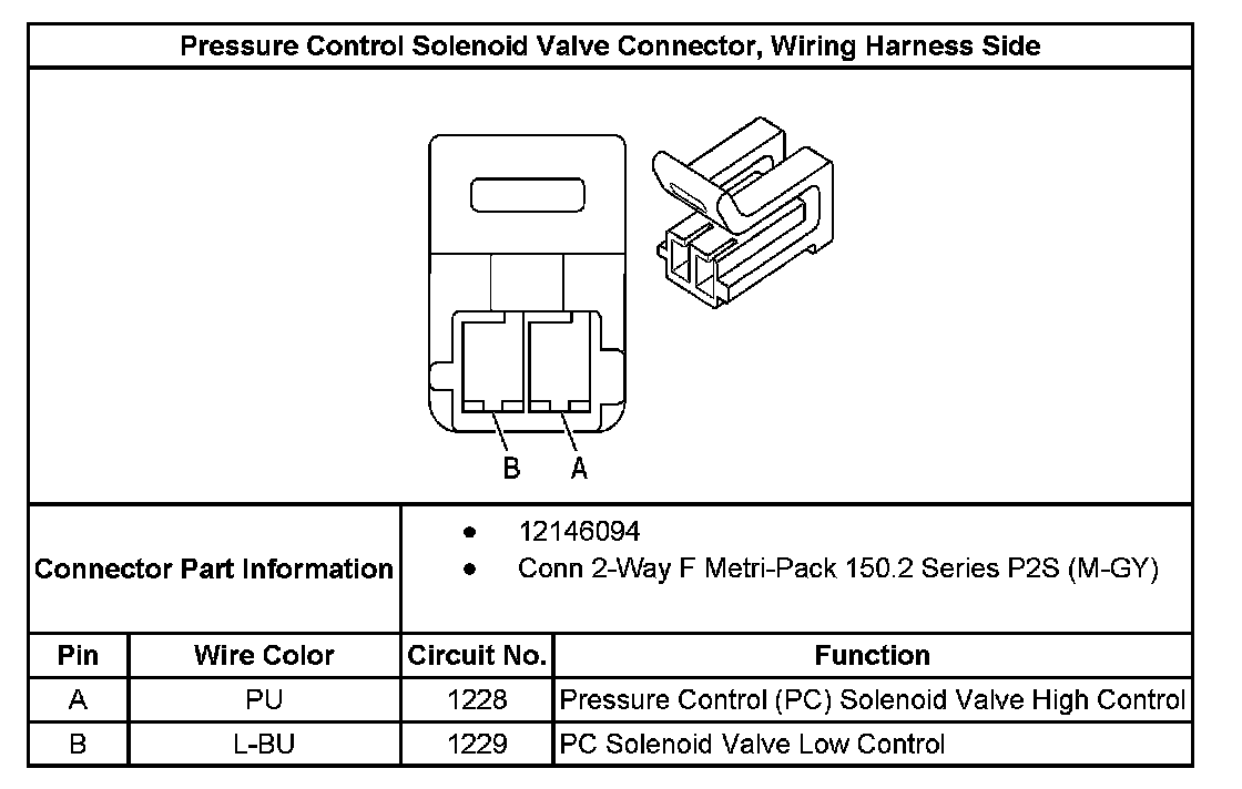 Pressure Control Solenoid Valve Connector, Wiring Harness Side: