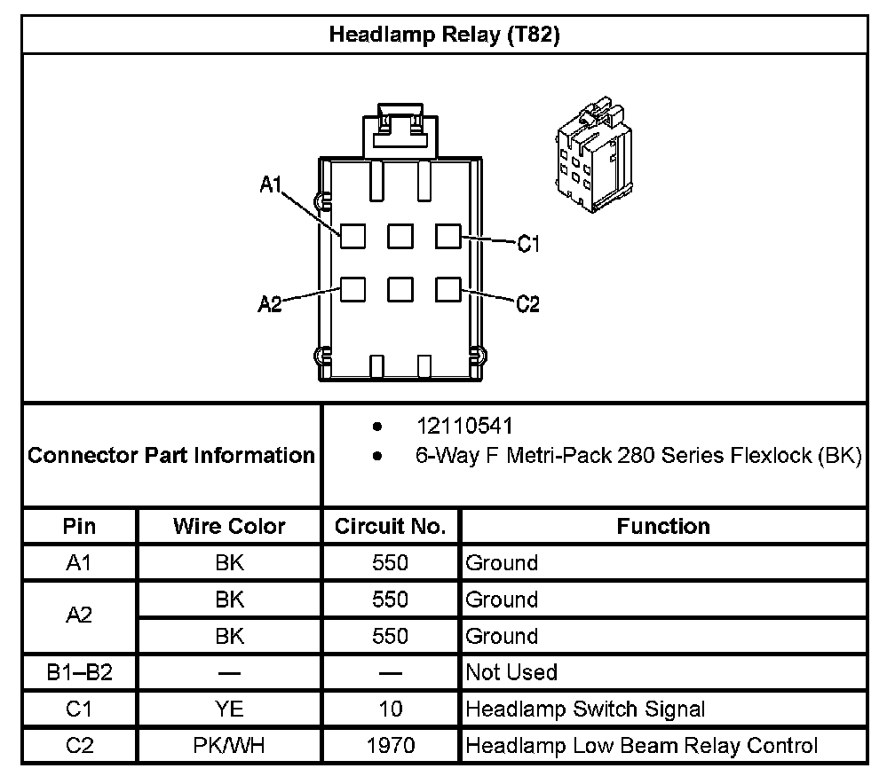 Headlamp Relay (With RPO Code T82):