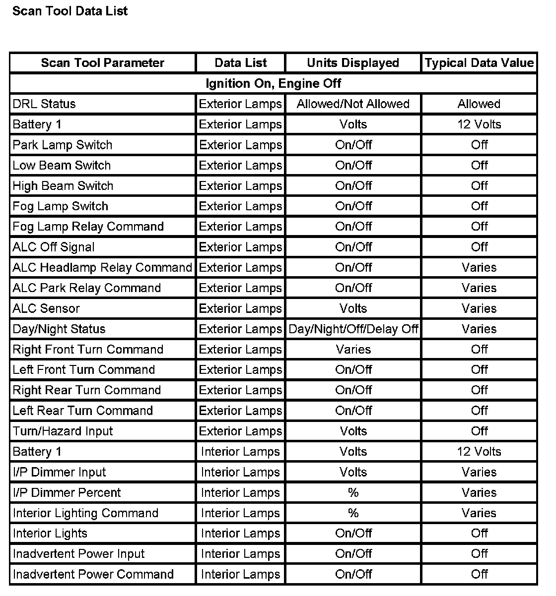 Scan Tool Data List: