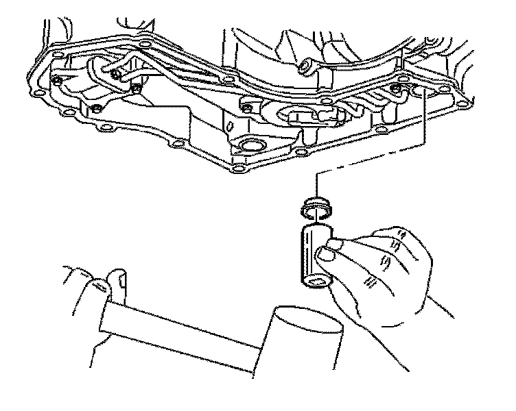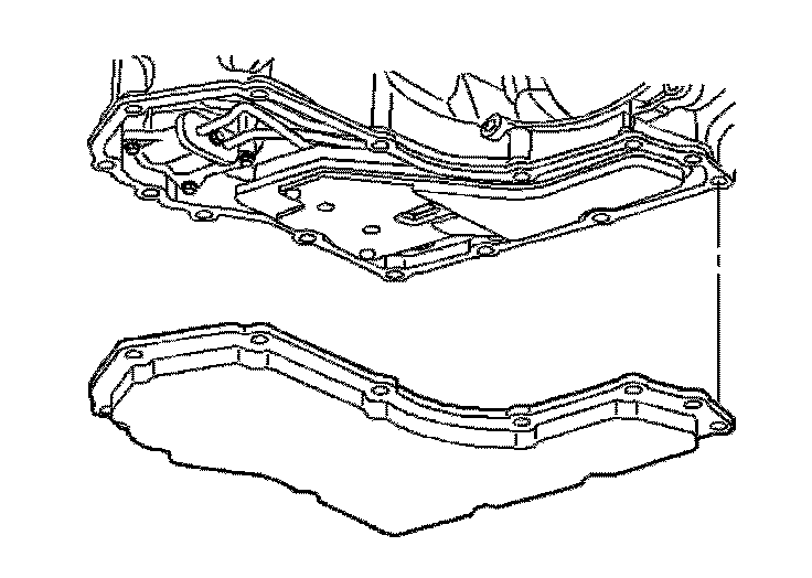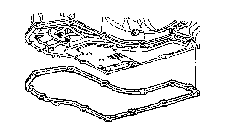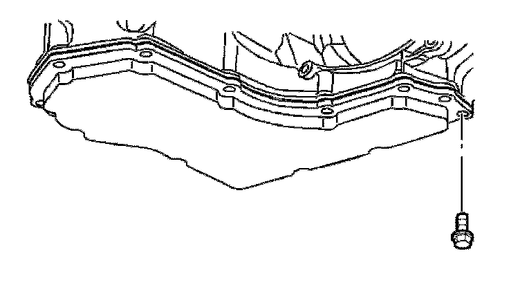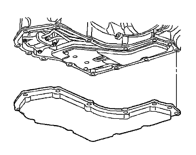11. Inspect the pan for leaks. Recheck the transmission fluid level. Refer to Transmission Fluid Check Fluid Type Specifications.