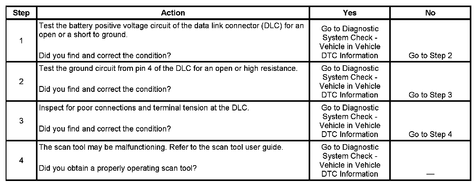 4. If the battery positive voltage and ground circuits of the DLC are functioning properly. The malfunction must be due to the scan tool.