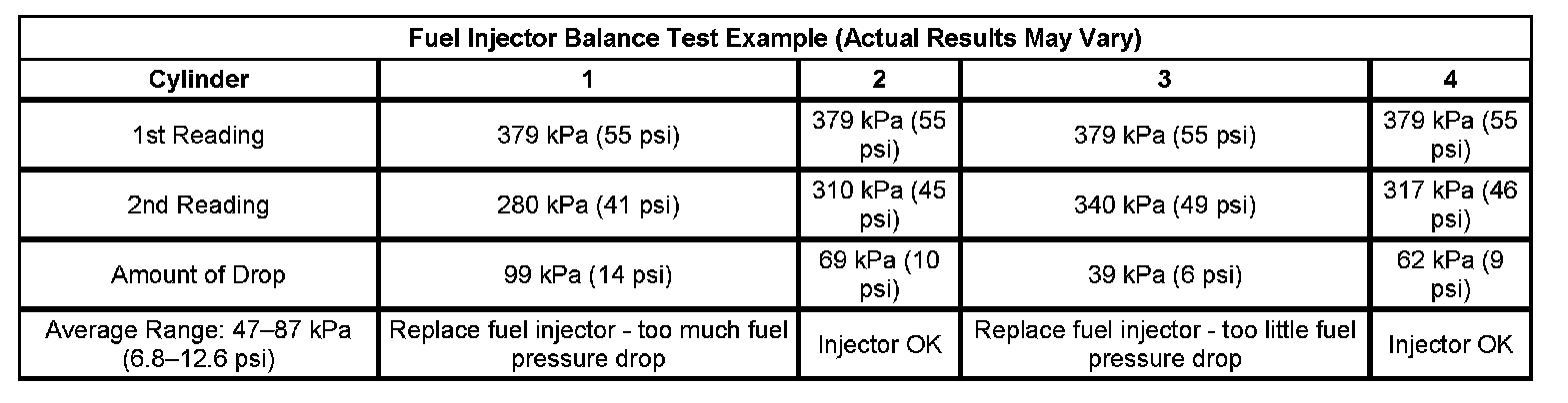 Fuel Injector Balance Test Example (Actual Results May Vary):