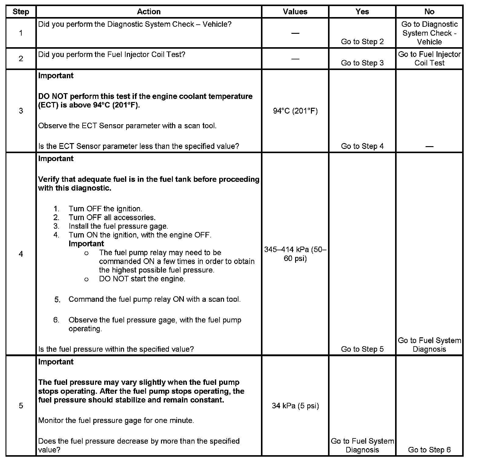 3. The engine coolant temperature (ECT) must be below the operating temperature in order to avoid irregular fuel pressure readings due to hot soak fuel boiling.