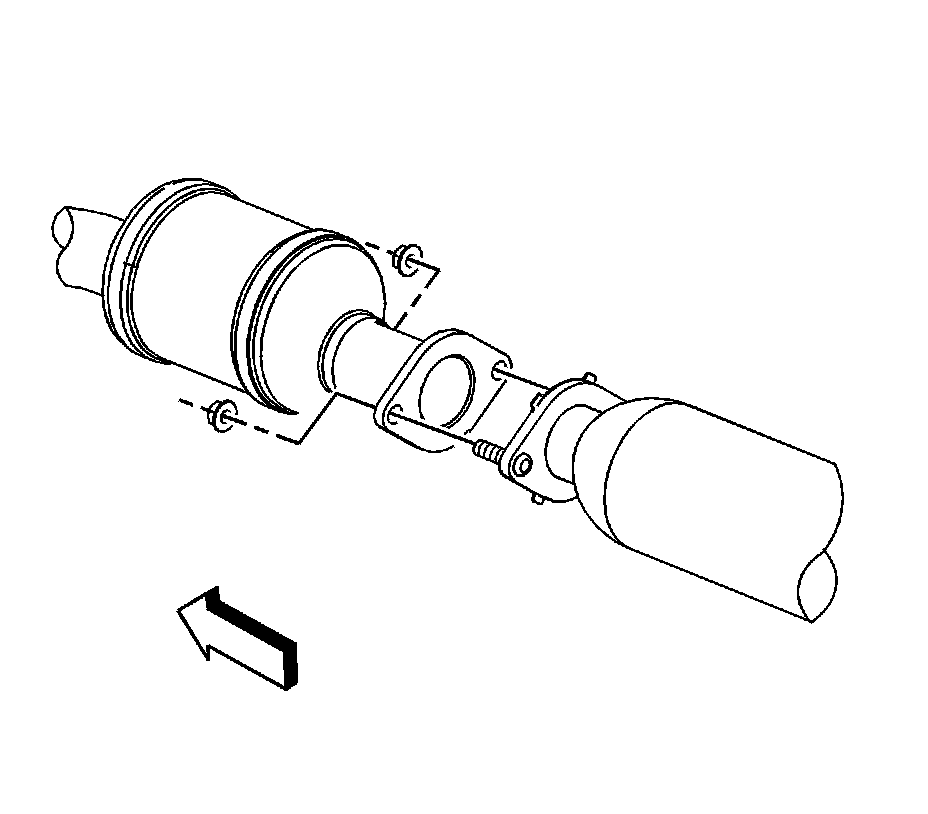 9. Pull the muffler pipe rearward and down until the studs are removed from the catalytic converter.