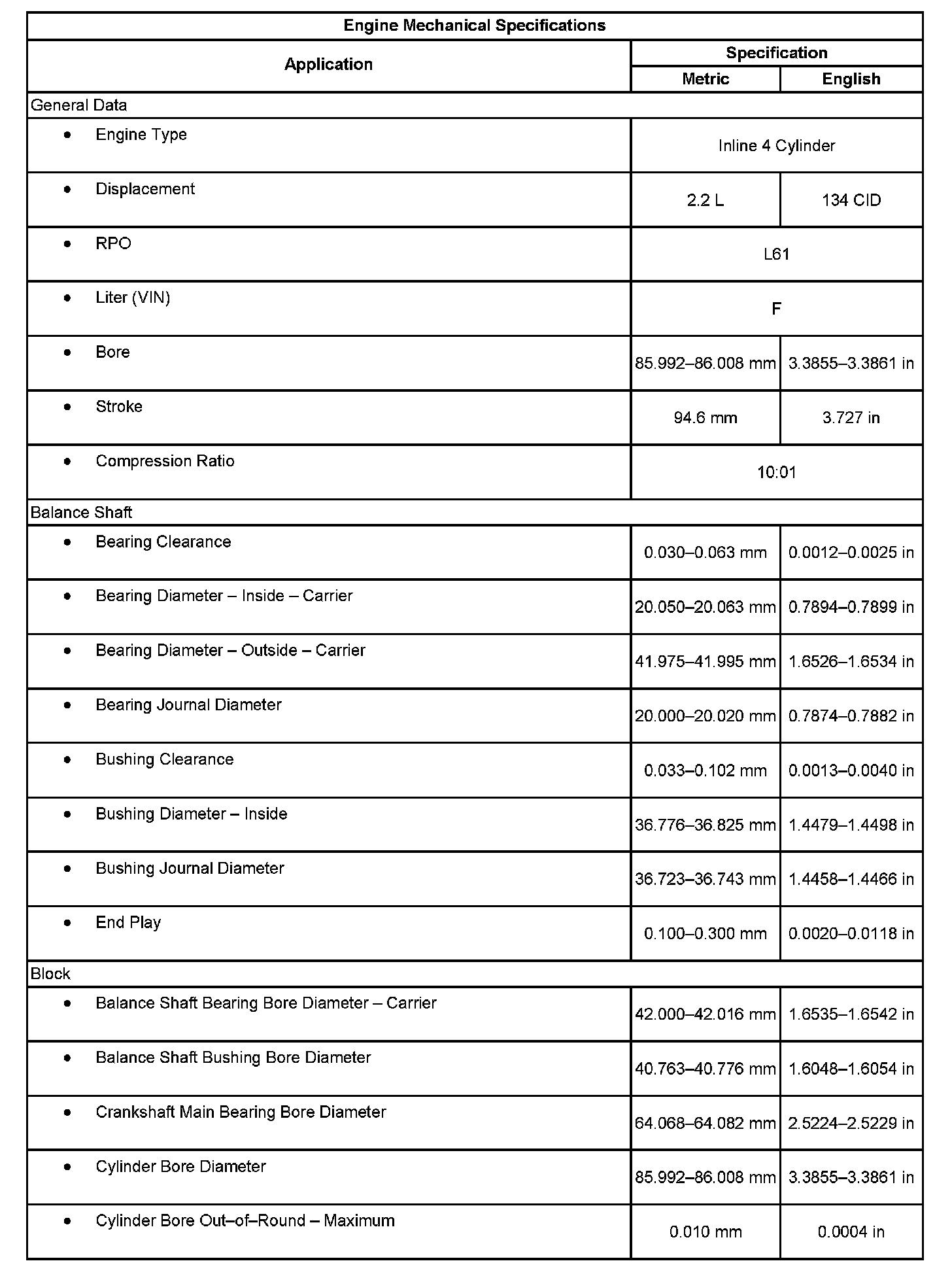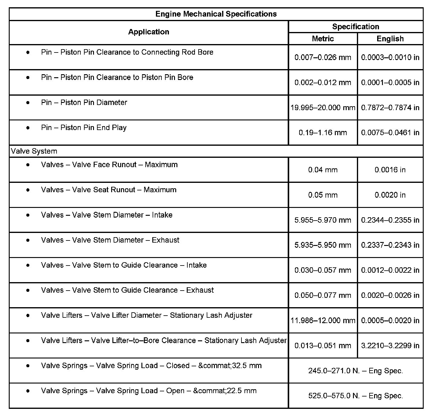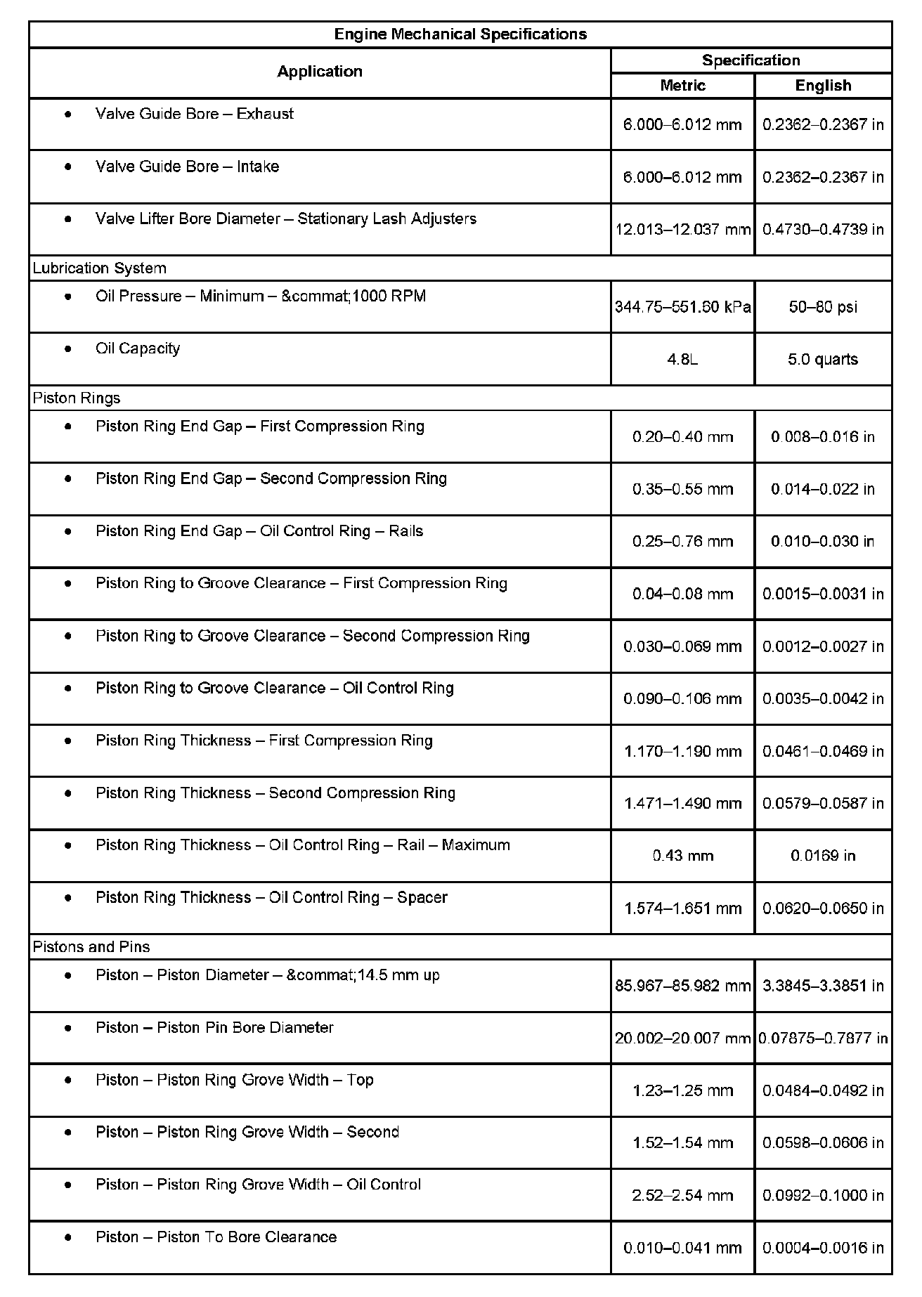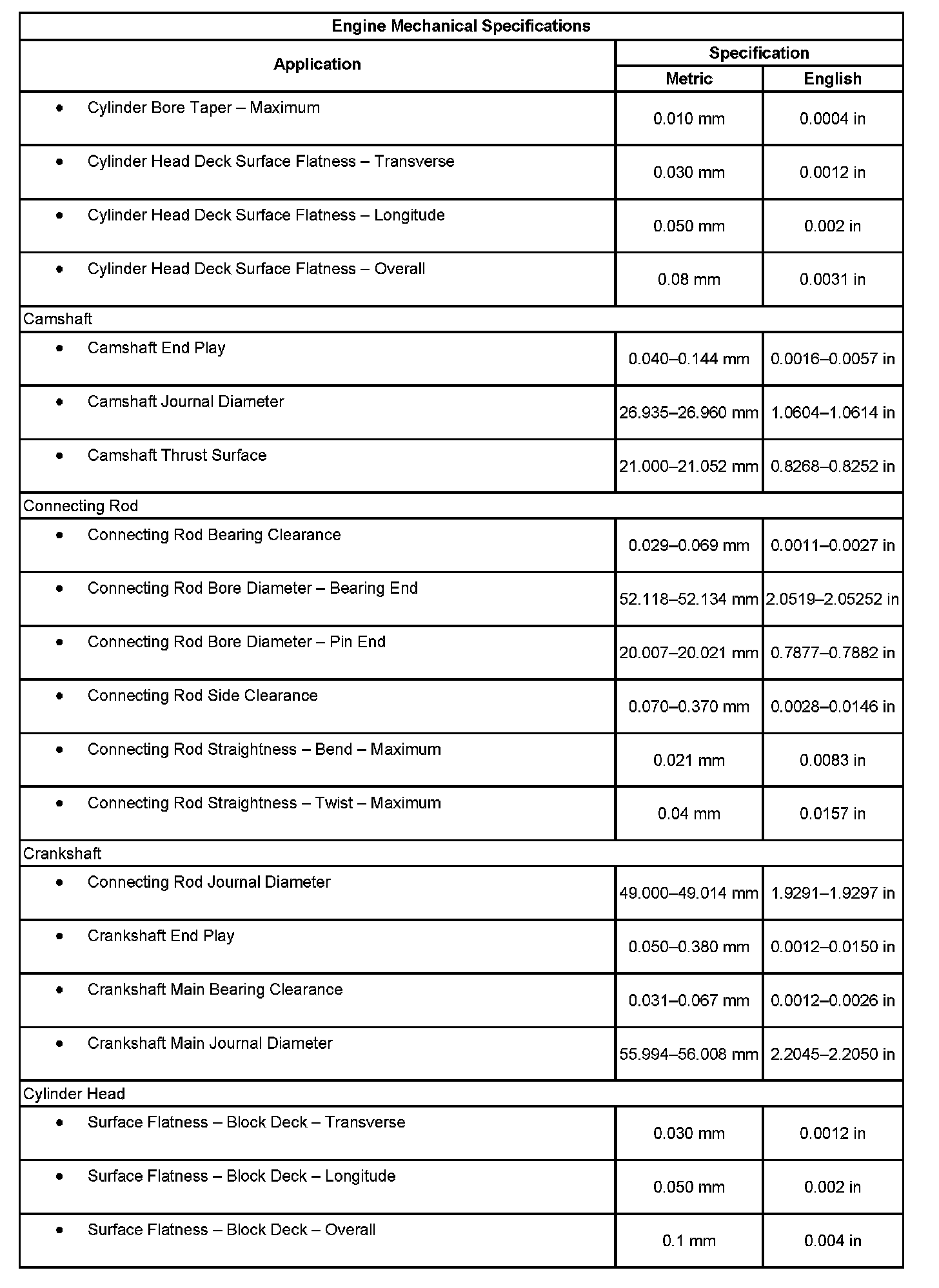 Engine Mechanical Specifications: