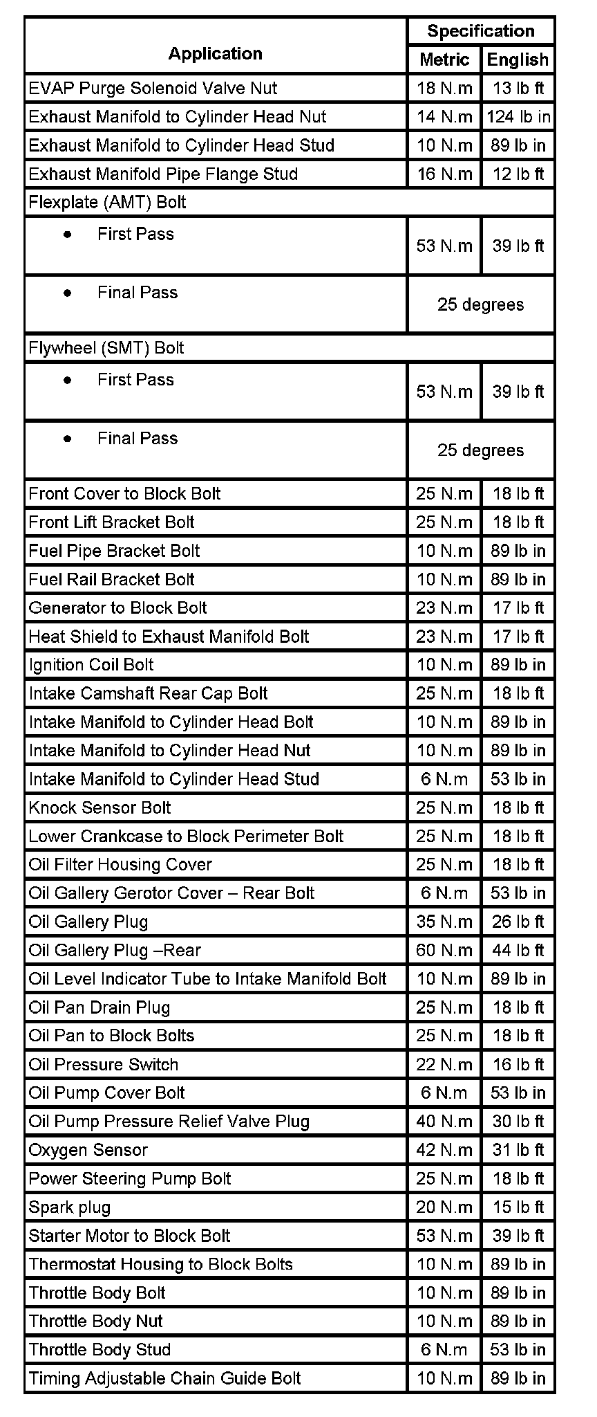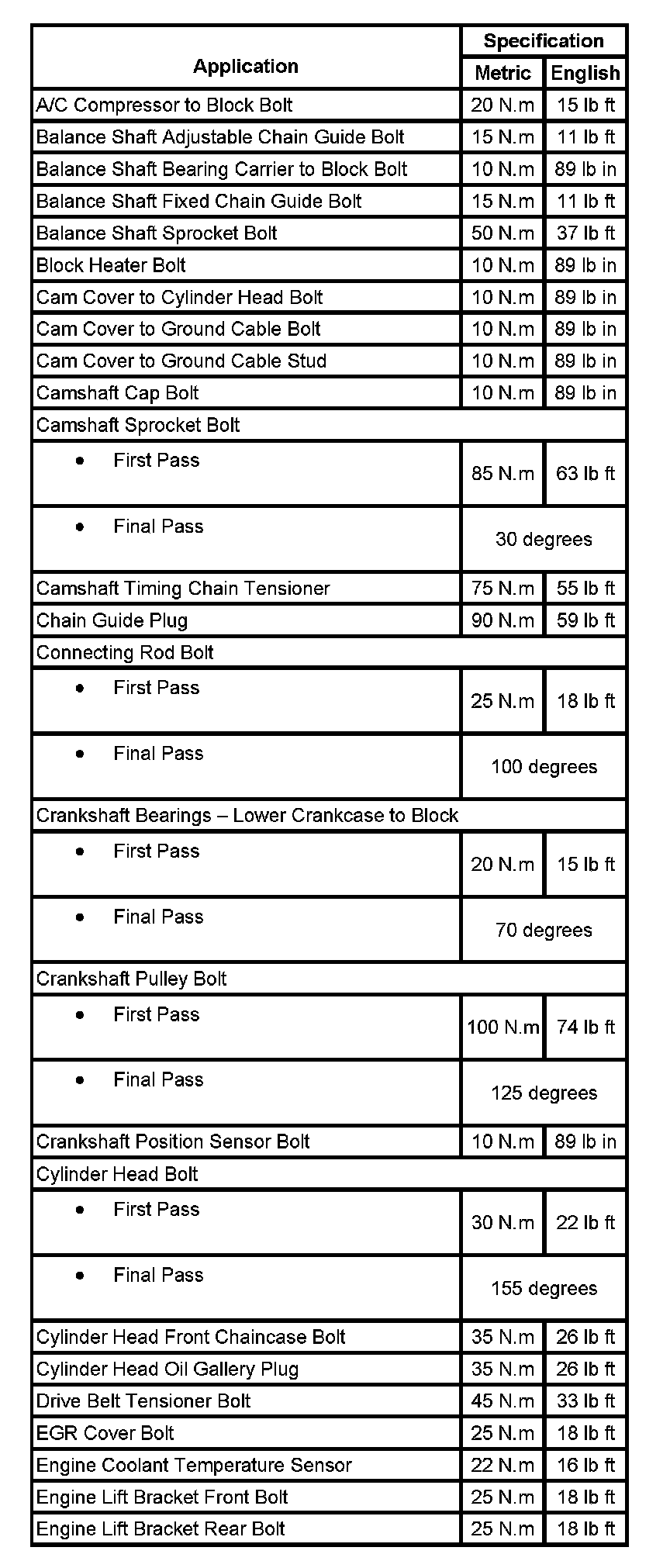 Fastener Tightening Specifications: