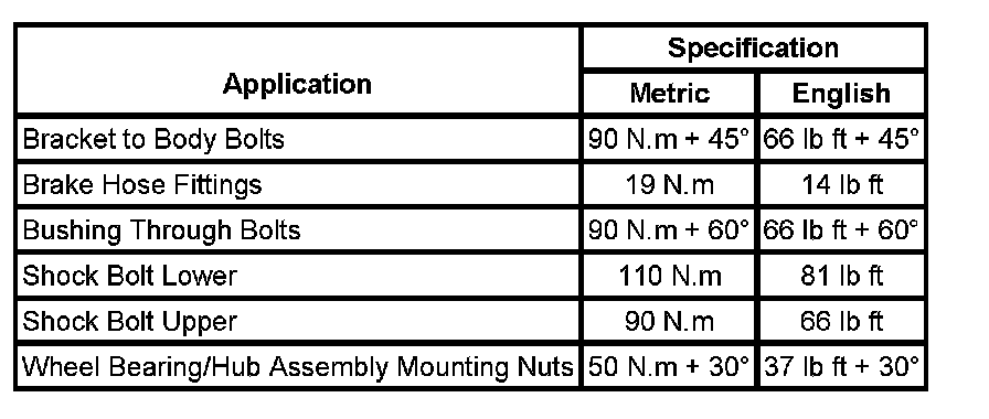 Fastener Tightening Specifications: