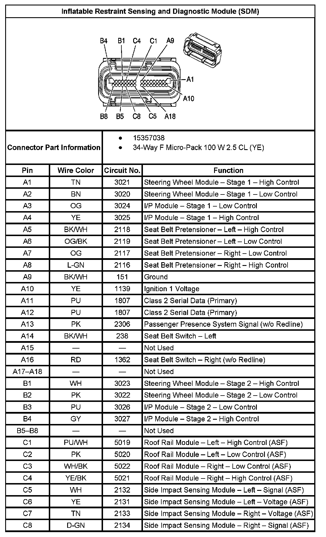 Inflatable Restraint Sensing And Diagnostic Module (SDM):
