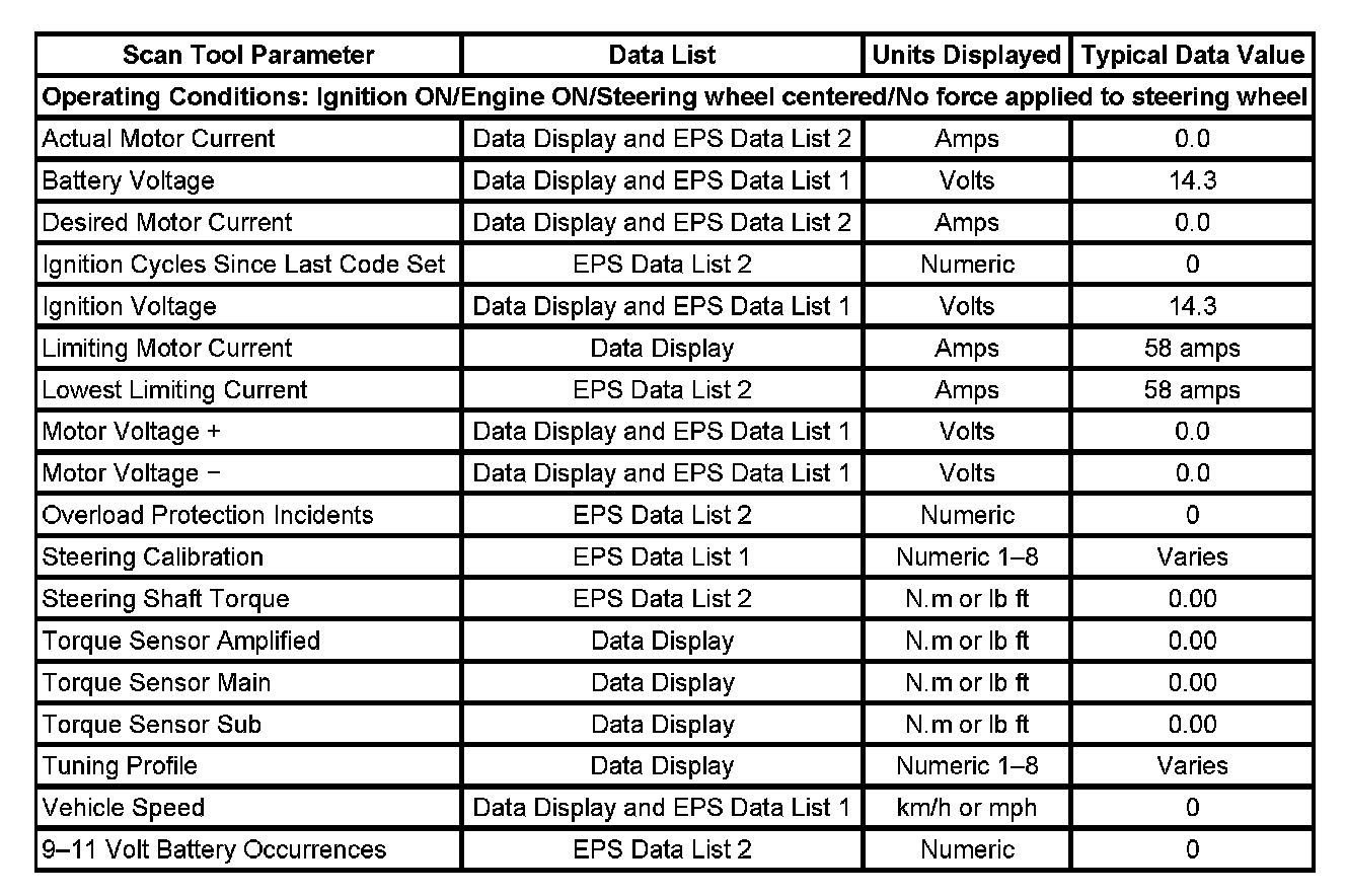 Not all listed data parameters are available on all vehicles.