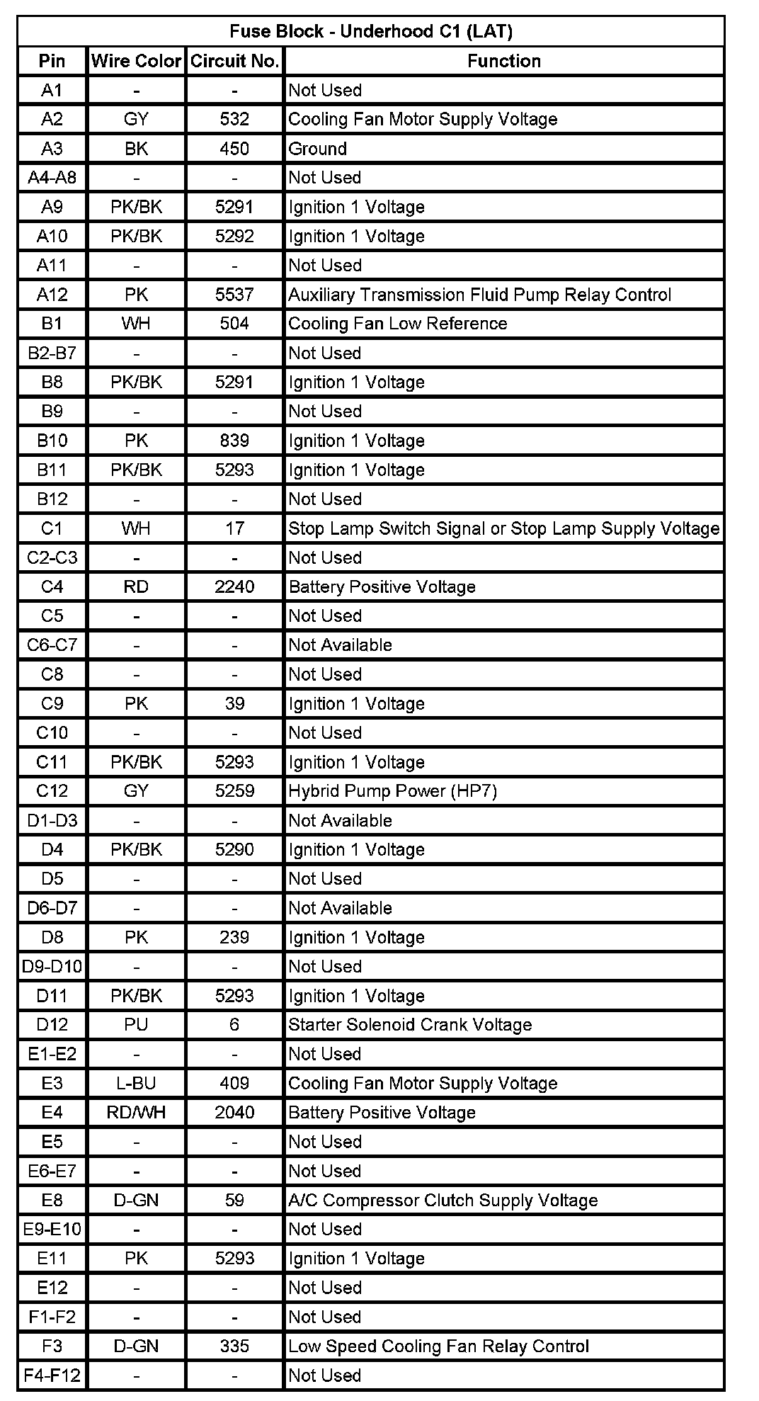 Fuse Block - Underhood C2 (Sedan) (Pin F3 To F12):