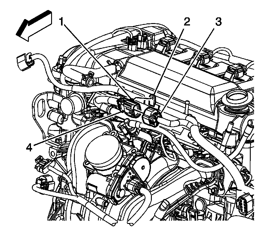 4. Disconnect the engine wiring harness electrical connector (3) from the fuel injector wiring harness electrical connector (4).