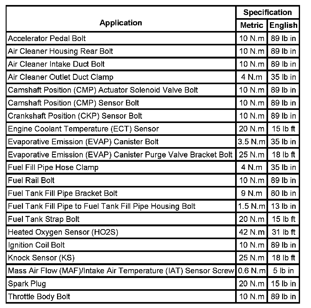 Fastener Tightening Specifications