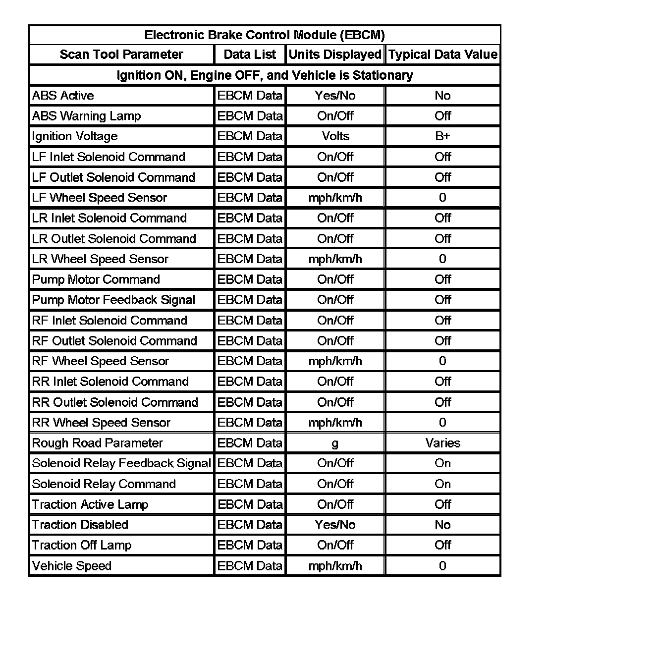 Scan Tool Data List