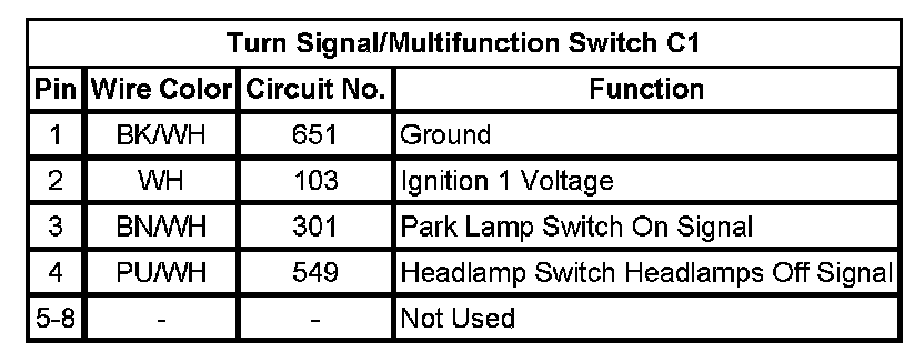 Turn Signal/Multifunction Switch C1