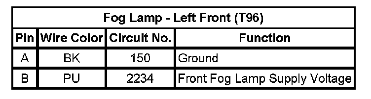 Fog Lamp - Left Front (T96)