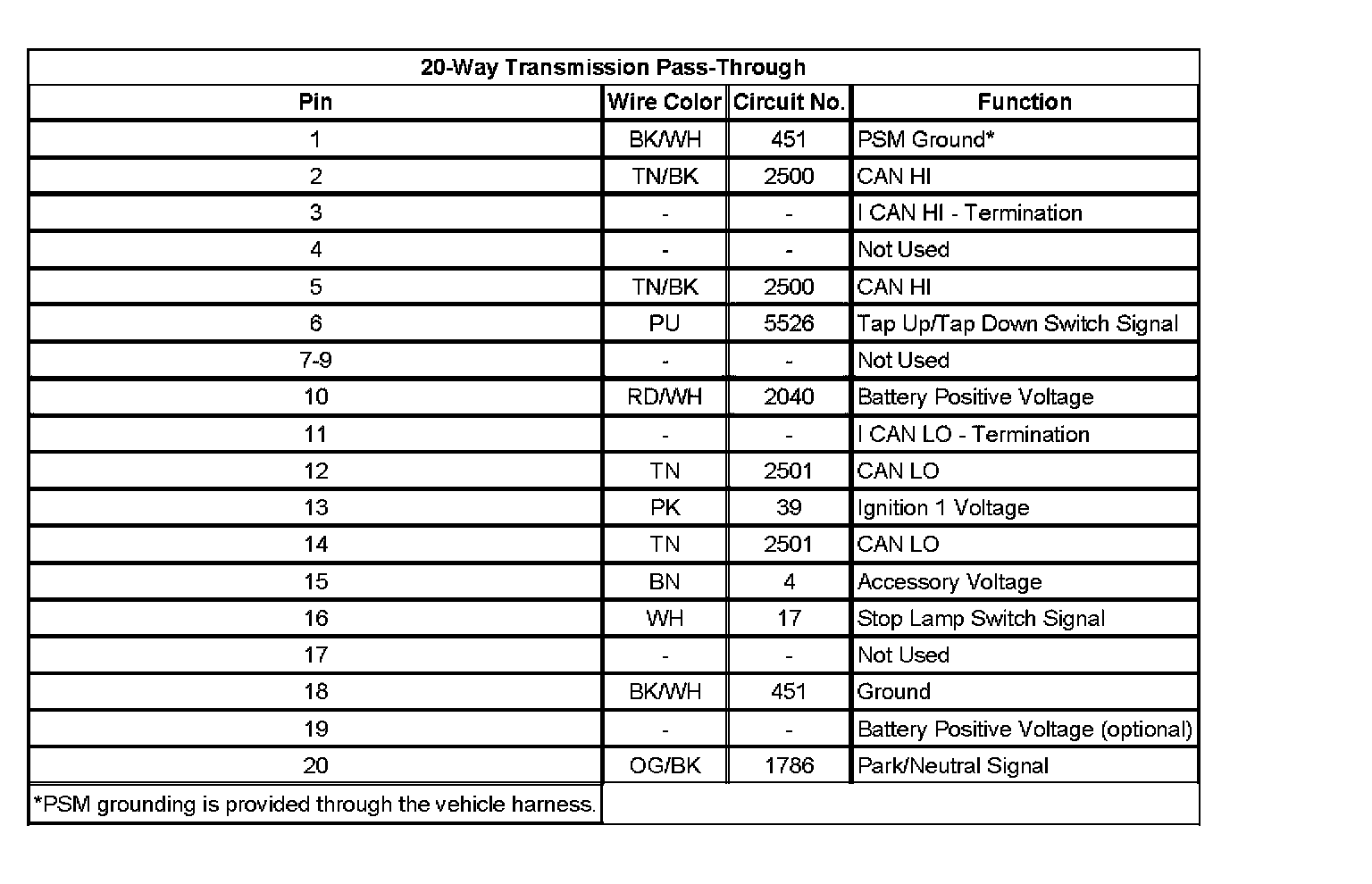 20-Way Transmission Pass-Through: