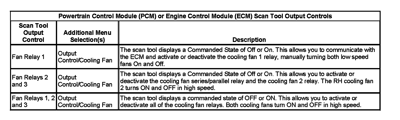 Powertrain Control Module (PCM_ Or Engine Control Module (ECM) Scan Tool Output Controls: