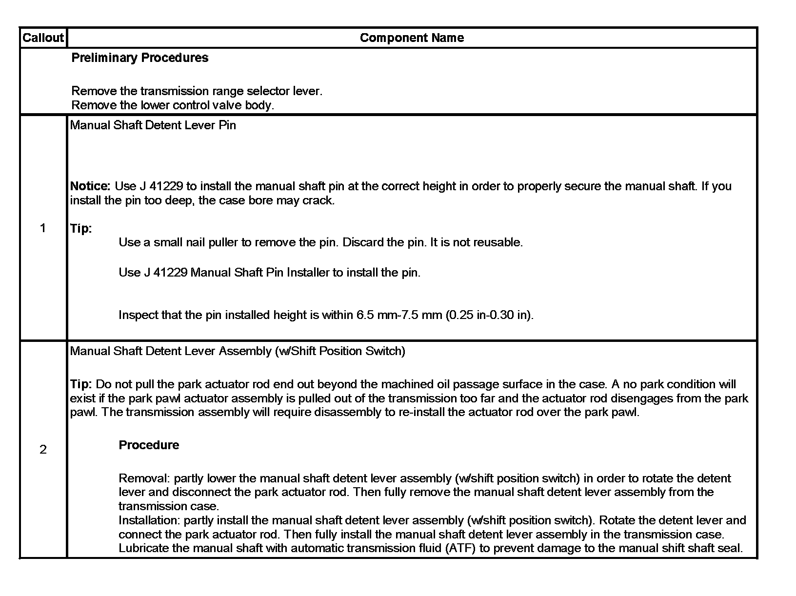 Manual Shift Detent Lever and Shaft Position Switch Assembly Replacement