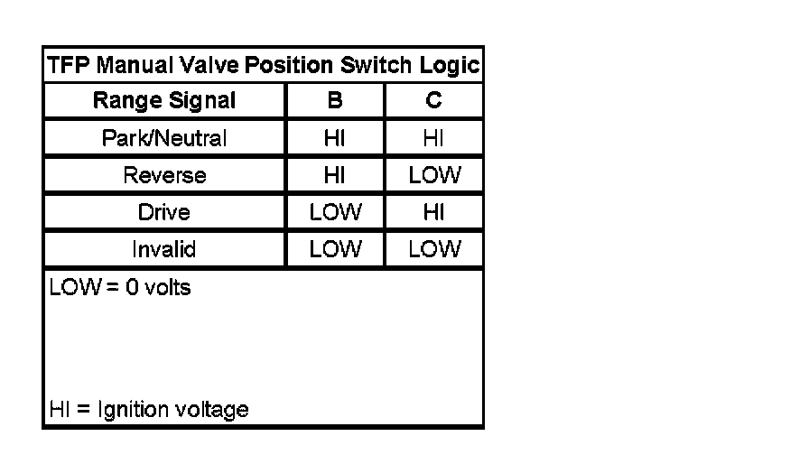 Transmission Fluid Pressure Manual Valve Position Switch Logic: