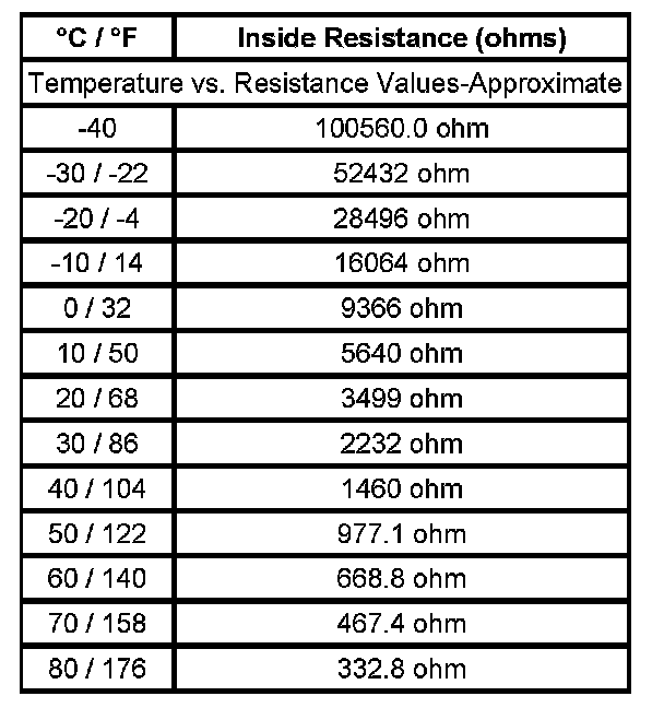 Sensor Resistance Table (Inside Air Temperature Sensor)
