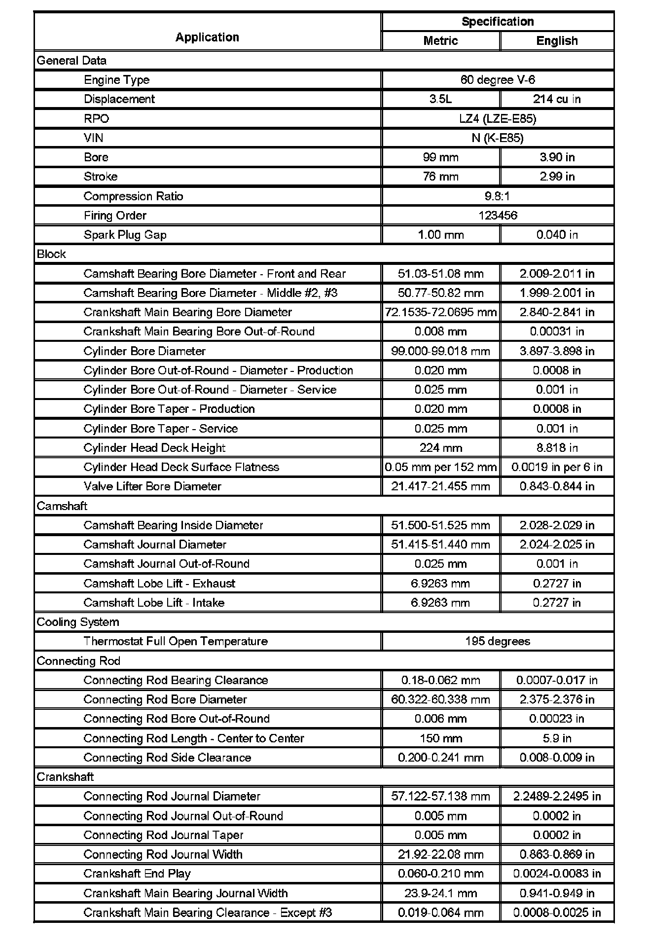 Engine Mechanical Specifications