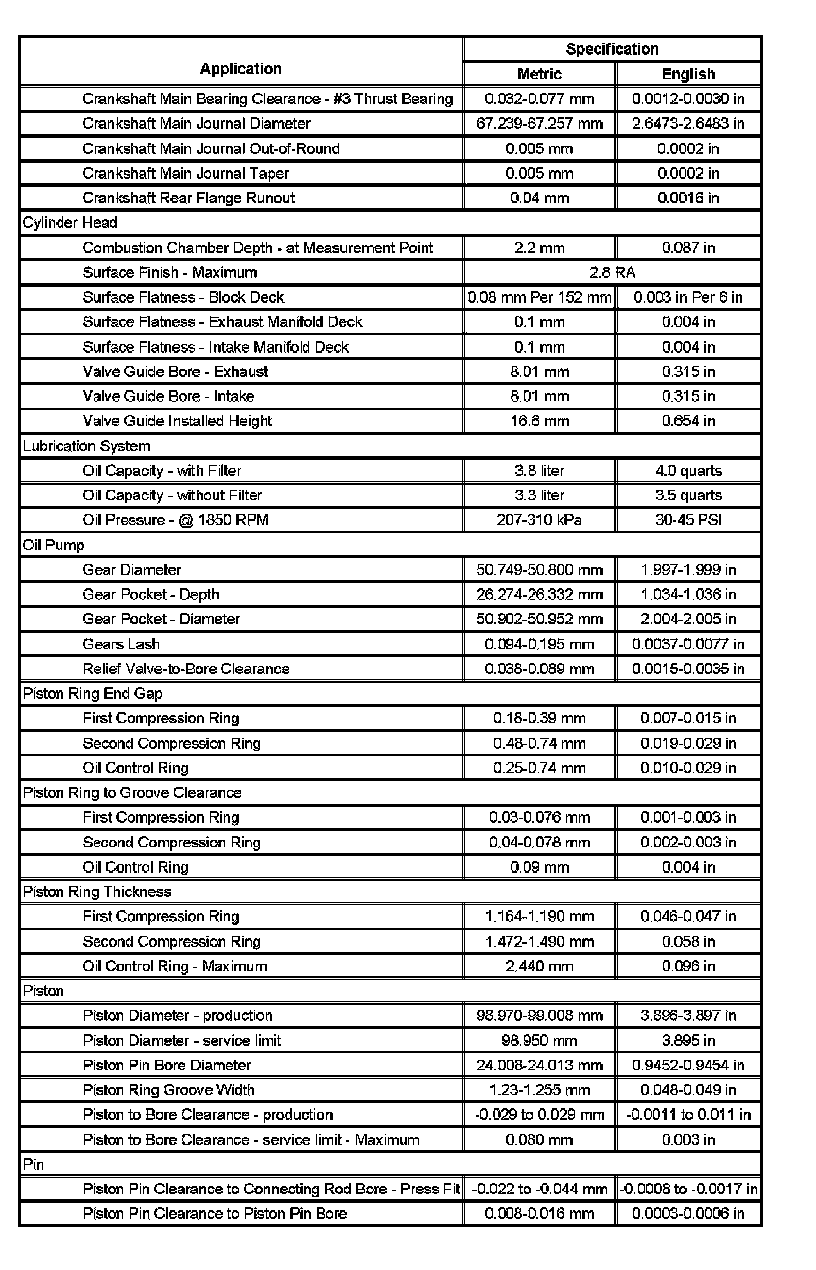 Engine Mechanical Specifications (Part 2):