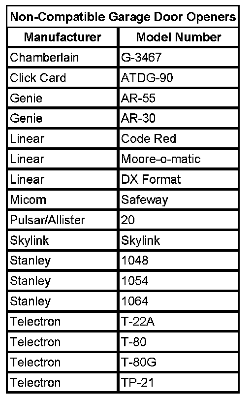 Important: Do not use the garage door opener (GDO) with any garage door opener that does not have the stop and reverse safety feature. This includes any garage door opener model manufactured before April 1, 1982.