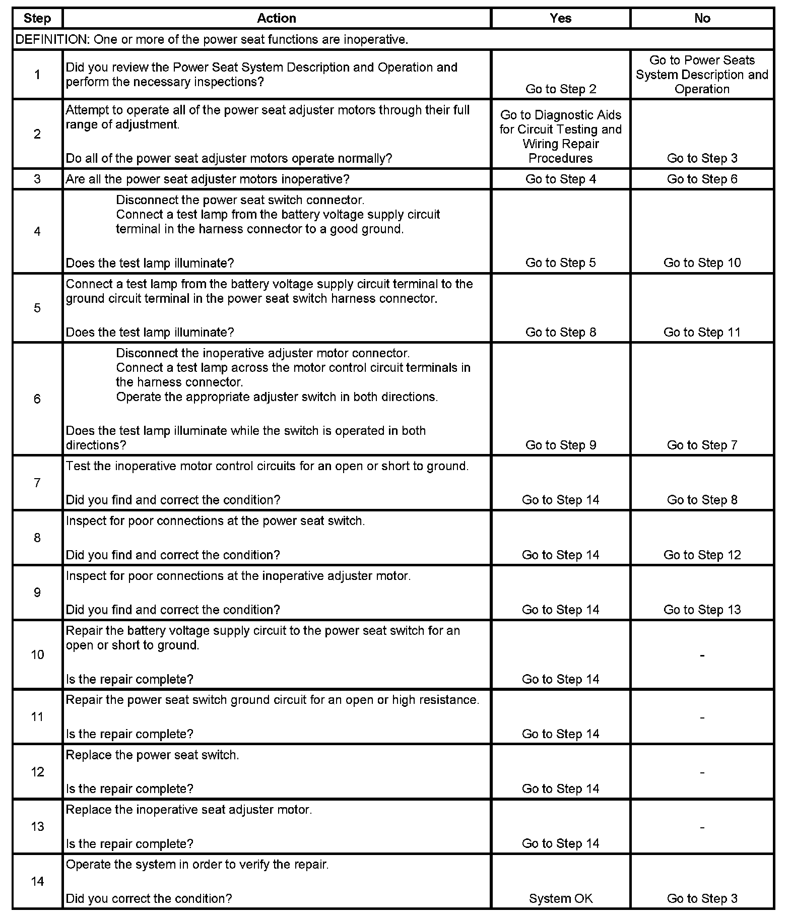 Power Seat Inoperative