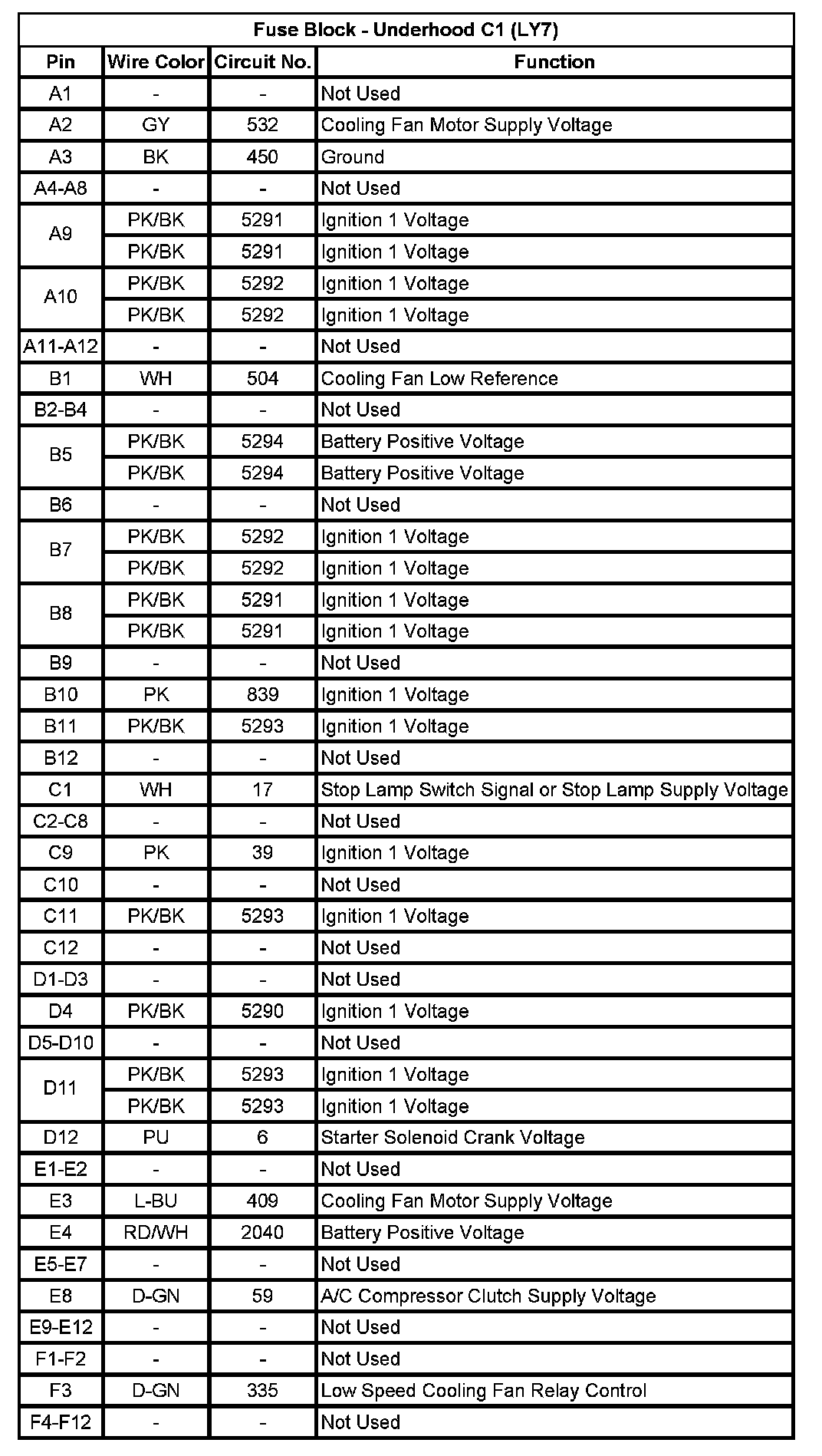 Fuse Block - Underhood C2 (Sedan) (Pin F3 To F12):