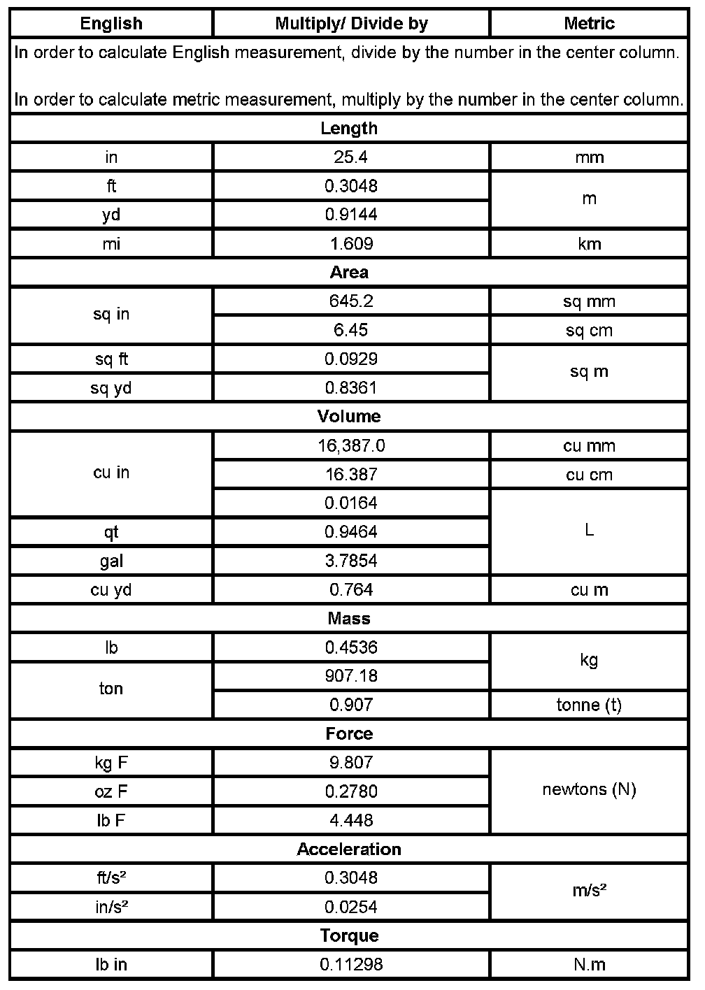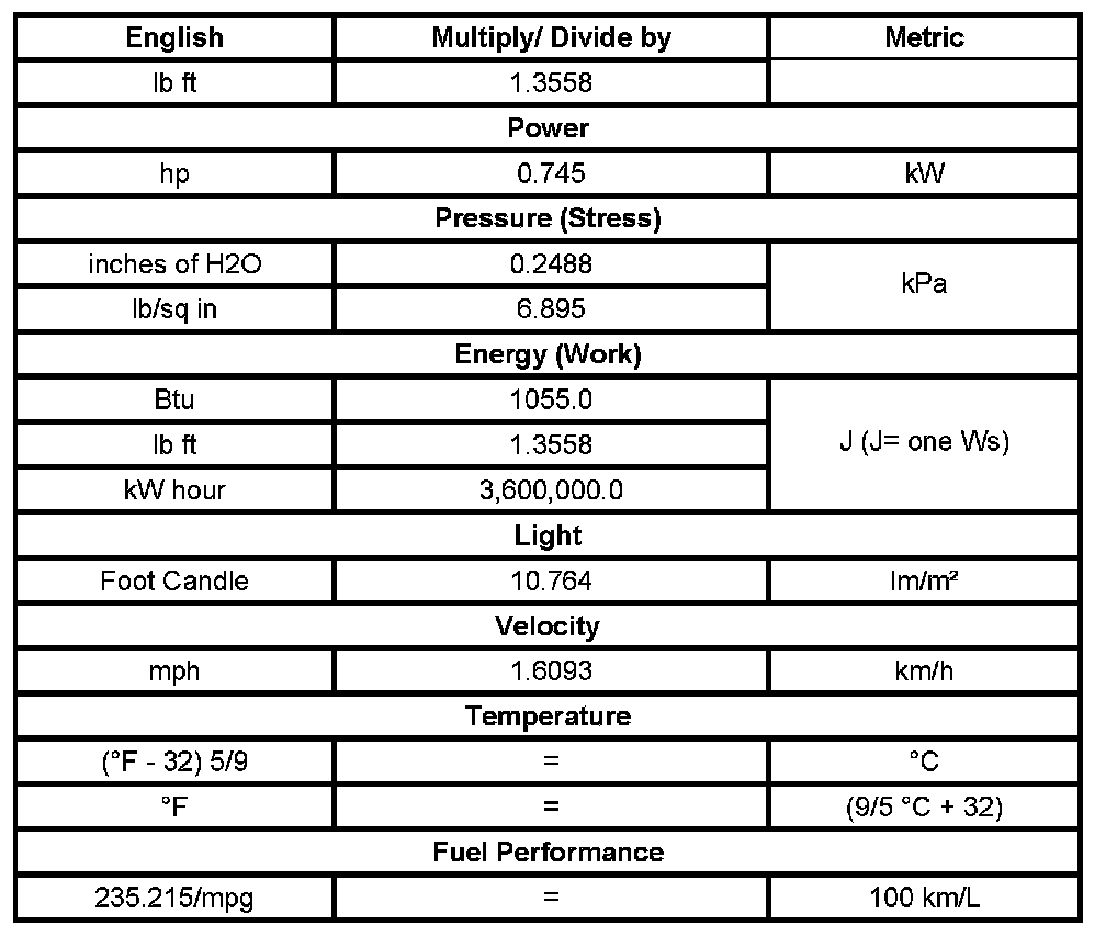 US English/Metric Conversion