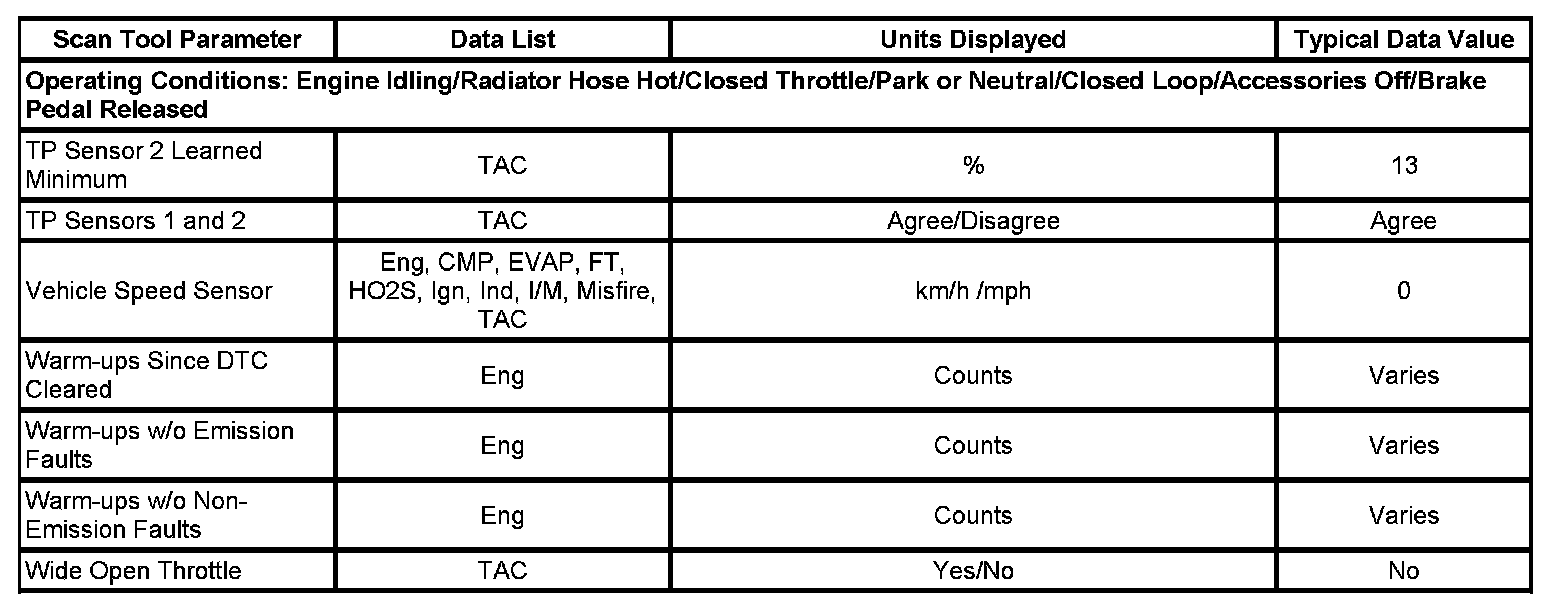 Only the parameters listed below are referenced in this service data for use in diagnosis. If all values are within the typical range described below, refer to Symptoms - Computers and Control Systems for diagnosis. - Symptoms - Engine Controls